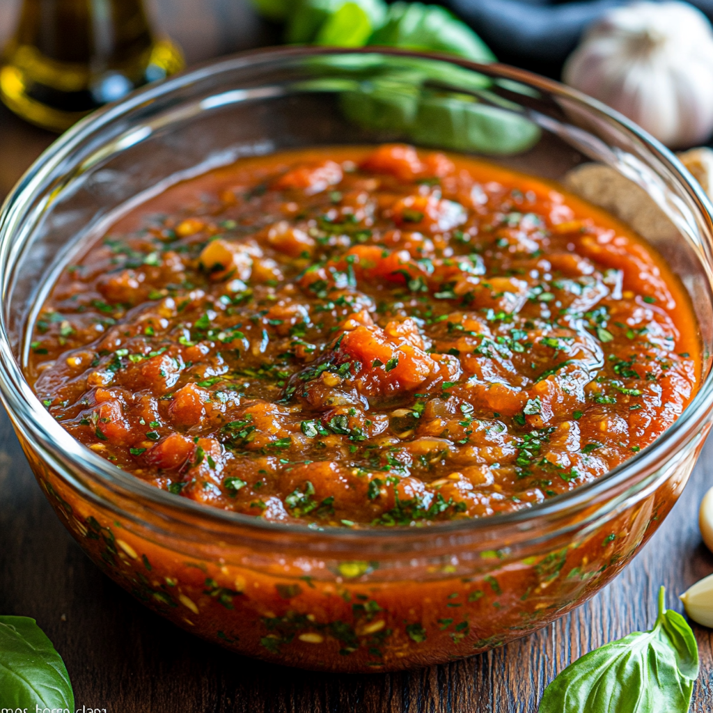 سس گوجهفرنگی ساده و کلاسیک که با سیر، ریحان و روغن زیتون درست میشود. این سس سبک و خوشطعم، انتخاب عالی برای اسپاگتی و پنه است.