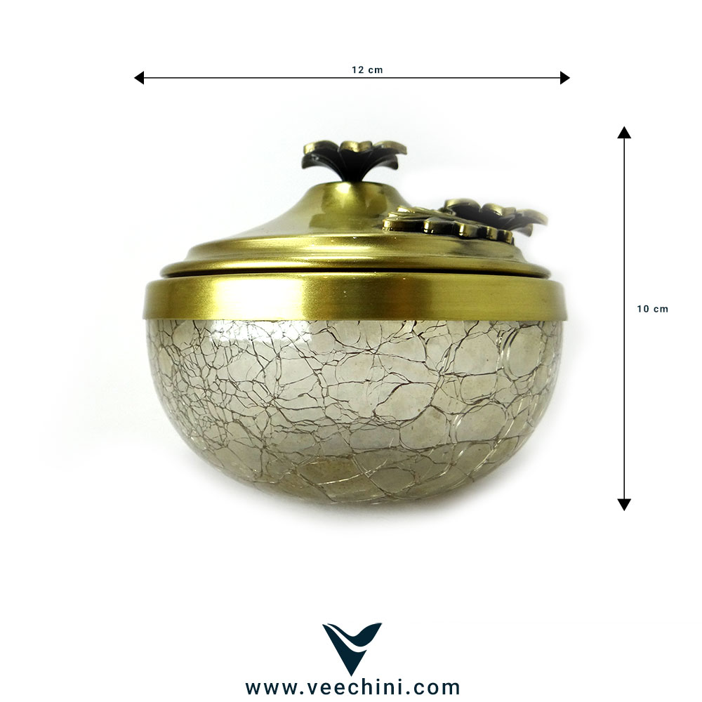 شکلات خوری کوچک یک شاهکار هنری در طراحی ظروف پذیرایی است که ترکیبی از شیشه ترکخورده و فلز برنج آبکاری شده را به نمایش میگذارد. طراحی منحصر به فرد این قندان با ابعاد ۱۲×۱۲×۱۰ سانتیمتر، آن را به یک گزینه ایدهآل برای پذیرایی در محیطهای مختلف تبدیل کرده است.