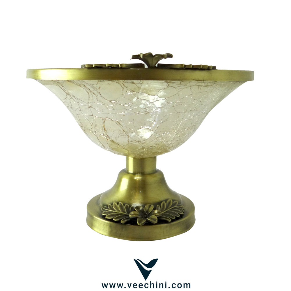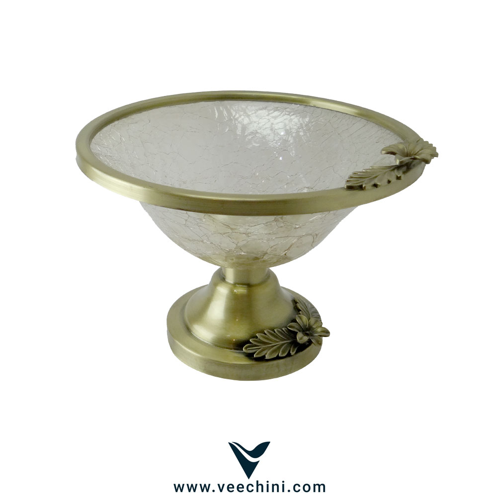 این میوه خوری پایه دار نمونهای برجسته از هنر و صنعت ظروف تزئینی ایرانی است. این محصول ساخت برند معتبر سیلور اورجینال، ترکیبی هنرمندانه از فلز آبکاری شده و شیشه ترک است که زیبایی چشمگیری را به نمایش میگذارد.