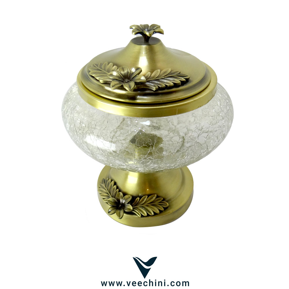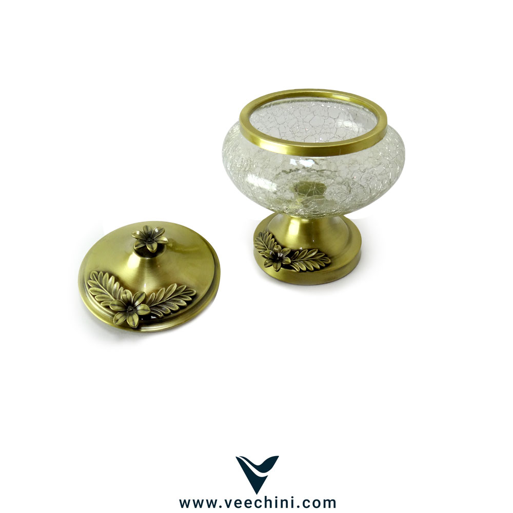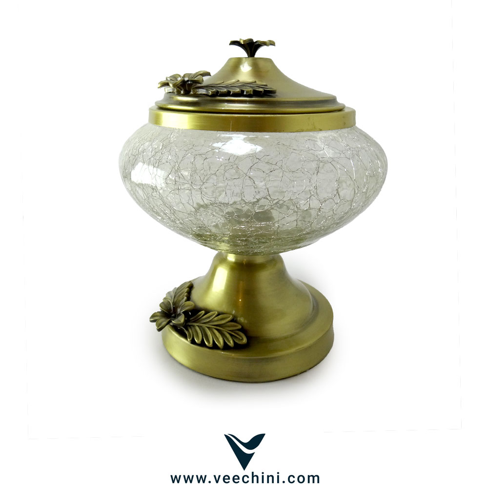 شکلاتخوری پایهدار ترکیبی از هنر و کاربرد است و شاهکاری از هنر شیشهگری و فلزکاری است که با ترکیب شیشه ترک خورده هنری و فلز برنج آبکاری شده انتیک، جلوهای منحصر به فرد به فضای پذیرایی میبخشد. این محصول با ابعاد ۲۰×۲۰×۱۳ سانتیمتر، اندازهای ایدهآل برای قرارگیری روی میز یا بوفه دارد.