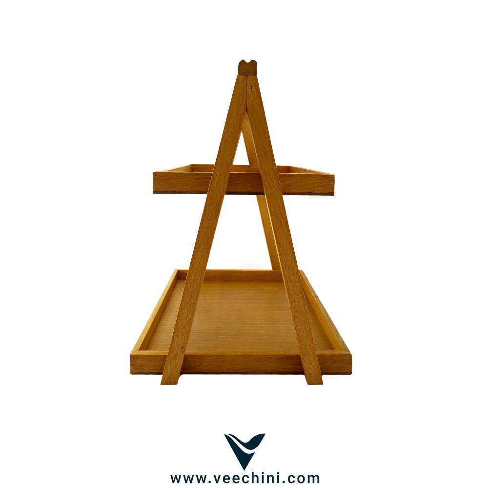 طراحی خلاقانه این استند به شکل حرف A، علاوه بر زیبایی بصری، استحکام سازهای قابل توجهی را نیز تأمین میکند. دو طبقه مستطیلی شکل با ابعاد متفاوت، امکان چیدمان سلسله مراتبی را فراهم میکند و به کاربر اجازه میدهد تا از فضای موجود به بهترین شکل استفاده کند.