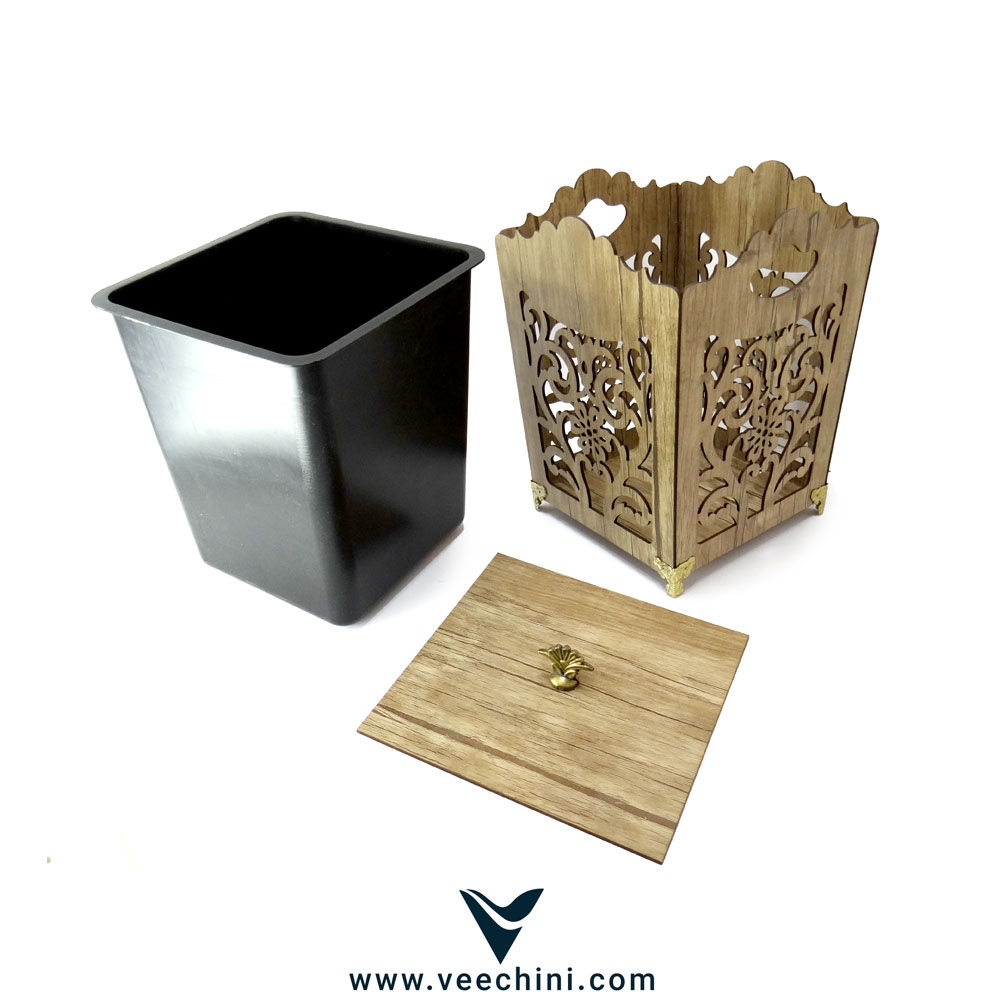 سطل زباله چوبی طرح اسلیمی زیبایی و کاربرد در یک نگاه
