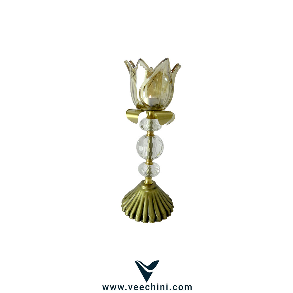 شمعدان لاله کوچک، نمونهای بینظیر از هنر ظریفکاری ایرانی است که با ابعاد متناسب ۲۶×۱۰×۱۰ سانتیمتر، ترکیبی دلنشین از کریستالهای درخشان و فلز برنج آبکاری شده طلایی را به نمایش میگذارد. این شمعدان کوچک، عضوی از مجموعه سهتایی شمعدانهای لاله است که برای فضاهای مختلف طراحی شده است.