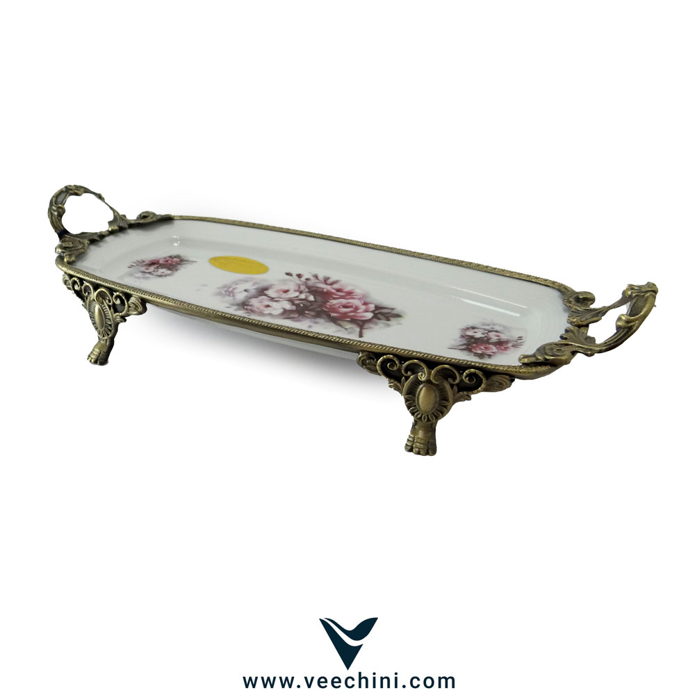 پایه‌های این رولت خوری از برنج آبکاری شده ساخته شده‌اند که علاوه بر استحکام، به آن زیبایی و درخشندگی می‌بخشند. این پایه‌ها به نحوی طراحی شده‌اند که ضمن حفظ تعادل ظرف، جلوه‌ای لوکس به آن می‌دهند.