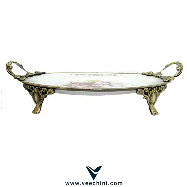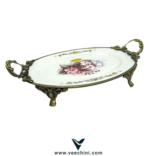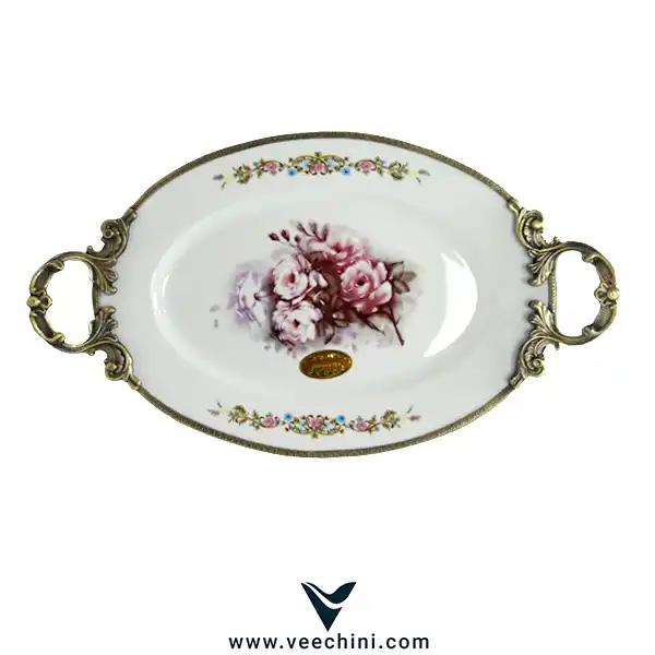 این دیس بیضی از چینی لمونژ ساخته شده است که به دلیل کیفیت بالا و ظرافت خاص خود شناخته میشود. سطح دیس با آبکاری برجسته طراحی شده که به استحکام و زیبایی بیشتر آن میافزاید. همچنین، دستههای طلایی ظریف و پایههای هنرمندانه طراحی شده، زیبایی و کلاس آن را تکمیل میکنند.