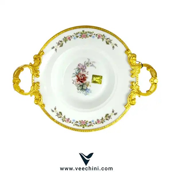 پاستاخوری طلایی لمونژ، شاهکاری از هنر و ظرافت فرانسوی، ترکیبی بینظیر از چینی مرغوب لمونژ و آبکاری طلایی درخشان است که با نقوش گل رز صورتی و طرحهای ظریف گیاهی تزئین شده است. این ظرف زیبا با ابعاد ۳۵×۲۸×۱۳ سانتیمتر، دستگیرههای باشکوه طلایی به سبک باروک و پایههای ظریف، تنها یک ظرف سرو نیست، بلکه یک اثر هنری است که هر سفرهای را به ضیافتی سلطنتی تبدیل میکند. همچنین پیشنها میشه پاستا خوری خوری لمونژ گل رز و شیرینی خوری لمونژ گل رز رو هم ببینید .