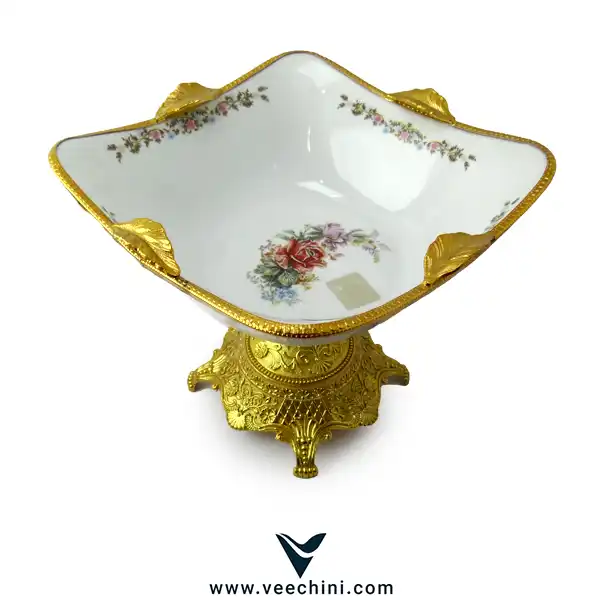 | جنس کالا | چینی درجه یک و فلز برنج آبکاری طلایی |