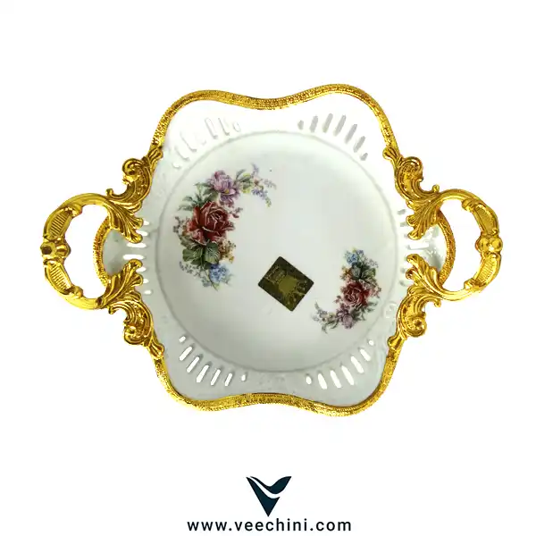 طراحی شیرینی خوری ویولت بسیار زیبا و چشم نواز است. بدنه اصلی از جنس چینی درجه یک ساخته شده و با طرح گلهای رنگارنگ تزئین شده است که حس طراوت و شادابی را به فضا منتقل میکند. دستهها و پایههای آن از فلز برنج با آبکاری طلایی ساخته شدهاند که درخشش و جلوهای لوکس به محصول میبخشند. این ترکیب رنگ و جنس، باعث شده تا شیرینی خوری ویولت هم در سبکهای کلاسیک و هم در دکوراسیونهای مدرن به خوبی جای گیرد.میوه خوری – شیرینی خوری گل ریز رو از دست ندهید .