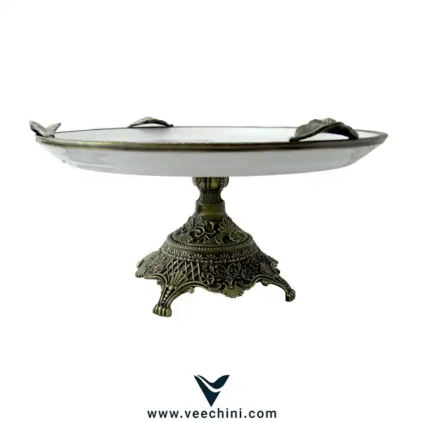 پایهها از فلز مرغوب و آبکاریشده با طرحهای برجسته هنری ساخته شدهاند. این پایهها جلوهای کلاسیک و شاهانه به ظرف دادهاند که با نقش گلهای روی سطح ظرف هماهنگ است. جنس پایه بهصورت ضدزنگ و مقاوم طراحی شده است تا علاوه بر زیبایی، استحکام بالایی داشته باشد.