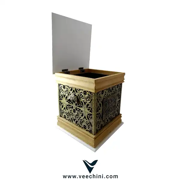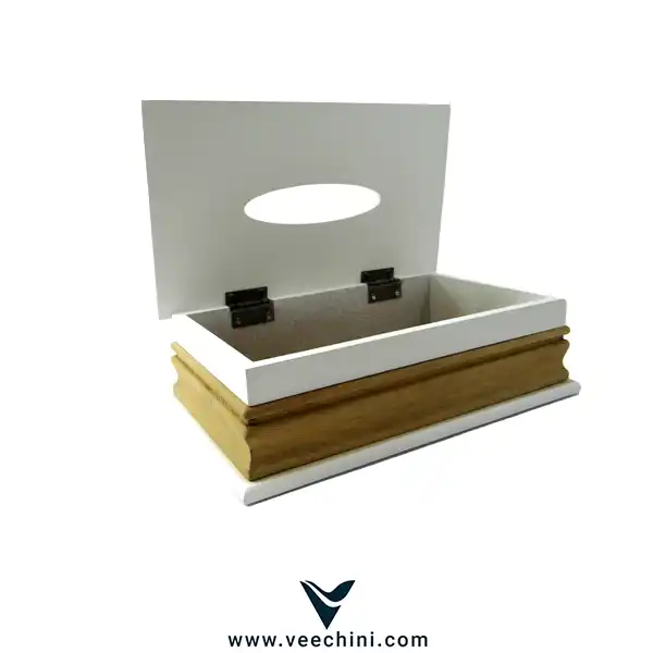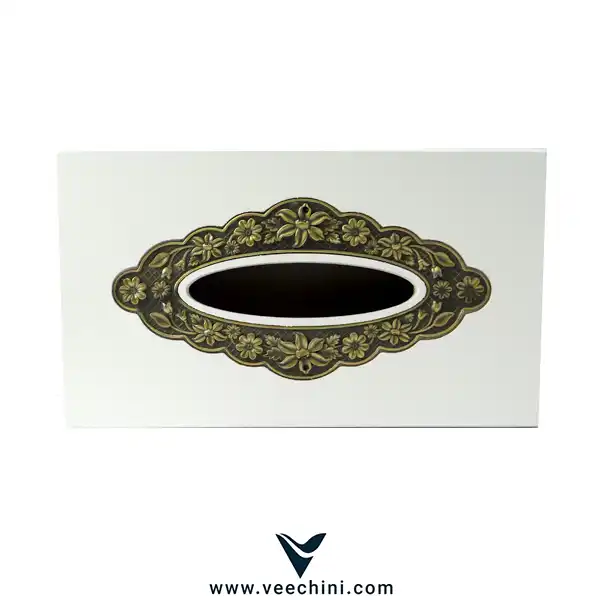 جا دستمال کاغذی دارای یک بخش فلزی تزئینی زیبا برای باز و بسته کردن است که باعث سهولت استفاده و حفظ زیبایی کلی طراحی شده است.