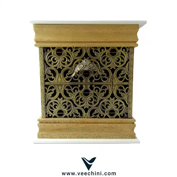 ترکیب چوب با تزئینات طلایی و نقوش برجسته در این محصول، جلوهای لاکچری به آن بخشیده و باعث جذابیت بیشتر محیط میشود.