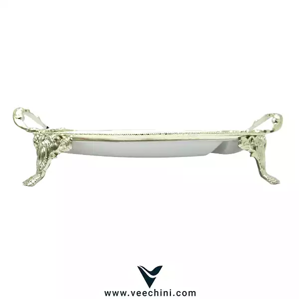 پایهها و دستههای این اردو خوری از فلز با روکش نقرهای براق ساخته شدهاند. روکش نقرهای علاوه بر ایجاد جلوهای لوکس و درخشان، از زنگزدگی و خوردگی فلز نیز جلوگیری میکند. طراحی ارگونومیک دستهها، حمل و نقل اردو خوری را آسان کرده و از لغزش آن جلوگیری میکند.
