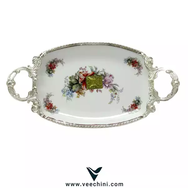 در تولید این سینی، از چینی لمونژ درجه یک استفاده شده است؛ چینیای که به درخشندگی بالا، ظرافت هنری، و مقاومت خوب در برابر خط و خش شهرت دارد. علاوه بر آن، پایهها و دستههای آن از فلز برنج ساخته شدهاند که دوام بالایی دارد و با یک آبکاری نقرهای باکیفیت پوشیده شده است تا در برابر زنگزدگی، تغییر رنگ و فرسایش محافظت شود. این ترکیب مواد، محصولی با طول عمر بالا و ظاهر همواره نو به شما ارائه میدهد.