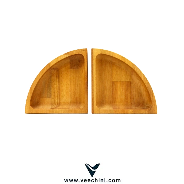 ظرف پذیرایی چوبی دو خانه با طراحی خاص ربع دایرهای این ظرف امکان استفاده به صورت تکی یا ترکیبی را فراهم میکند و همین موضوع آن را به گزینهای ایدهآل برای پذیراییهای رسمی و روزمره تبدیل کرده است.