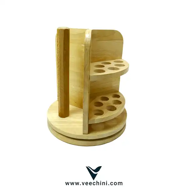 این استند از چوب طبیعی رابر وود (Rubber Wood) ساخته شده است — چوبی مقاوم، زیبا و دوستدار محیطزیست که به دلیل تراکم بالا و دوام زیاد، یکی از بهترین گزینهها برای وسایل آشپزخانه به شمار میرود.